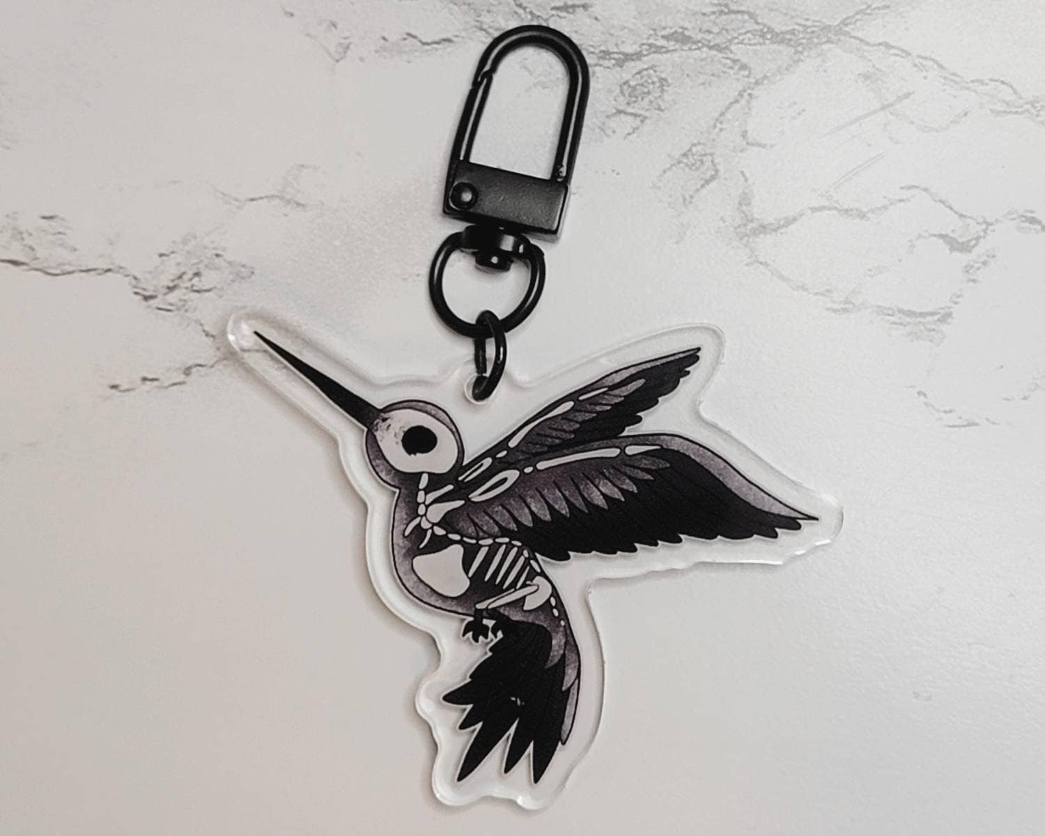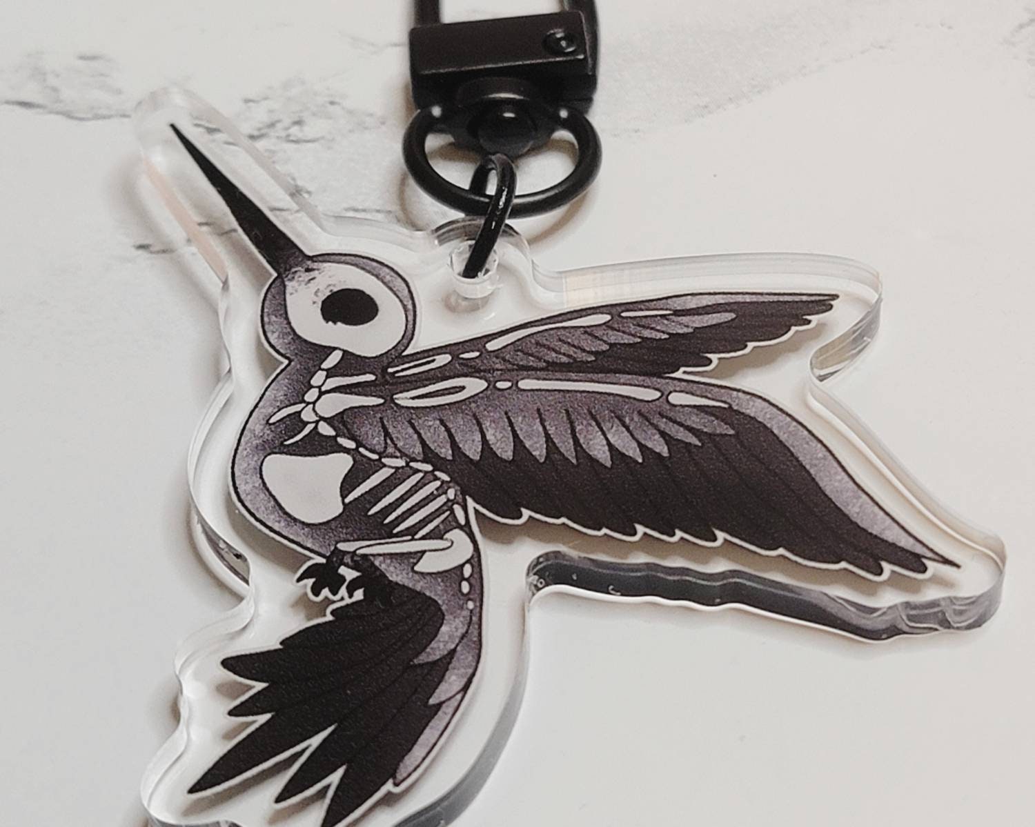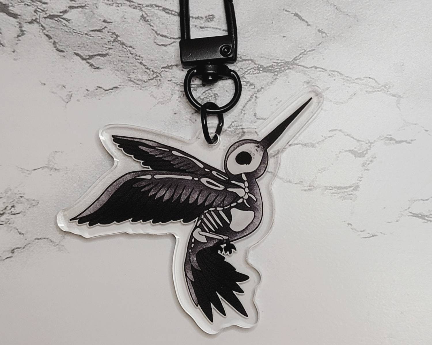 These are full "color" double sided acrylic keychain charms. Included with 1.5” long black keyring chain. Making the total hang length at 3.25”.