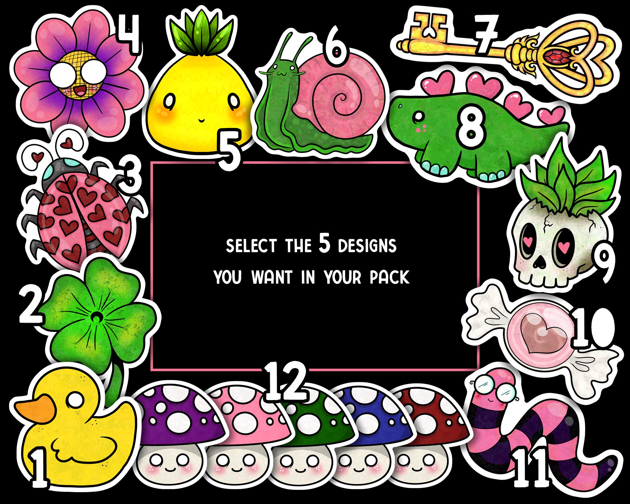 Pack of 5 mini stickers that you get to select!
